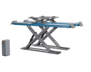 Podnośnik elektrohydrauliczny pod geometrie elektrohydrauliczny podnośnik podprogowy pneumatycznie zwalniana blokada wysokości, montaż w fosie lub na posadzce (opcjonalnie), długie płyty rozprężne, wybrania pod obrotnice, podnośnik zaprojektowany do montażu w fosie lub na posadzce (po domówieniu opcjonalnych najazdów)