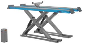 Invento SL550 LTPD to podnośnik nożycowy o udźwigu 5t przeznaczony do pomiaru geometrii z wbudowanymi szarpakami. Specjalne wybrania pod obrotnice i